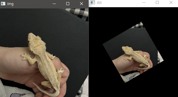 이후에 dst라는 변수에 이미지를 적용하는 warfAffine을 적용해주었다.